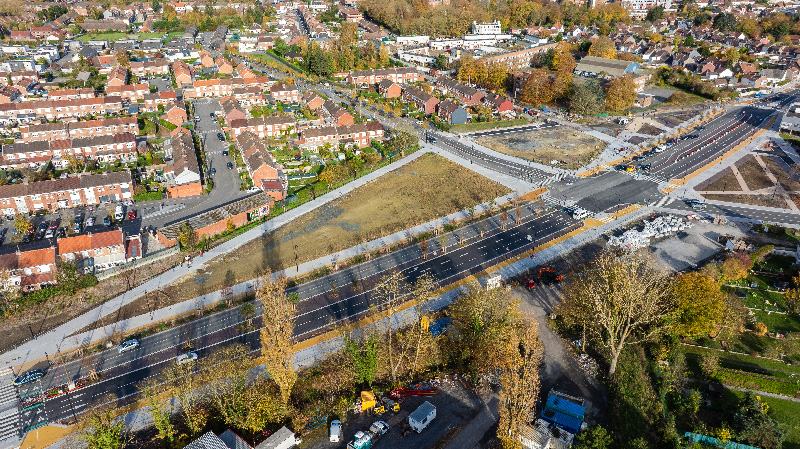 Les deux bretelles d’autoroute – vers et depuis Lille – reconstruites, l’historique passerelle reliant Dutemple à la Chasse Royale détruite, un accès direct pour les habitants de Dutemple créé… c’est tout le secteur qui est désormais métamorphosé en un lieu apaisé et végétalisé grâce aux nombreux espaces verts présents.